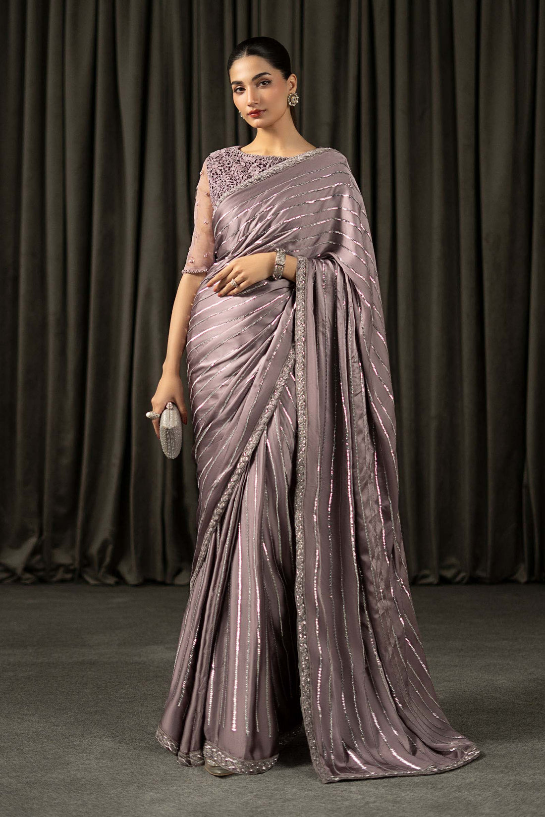 Blouse Embroidered Hand-Embellished BlouseHand-Embellished Boat NecklineHand-Embellished Half SleevesBall Drops On BorderCotton Satin Lining (Attached)Color: PurpleFabric:...