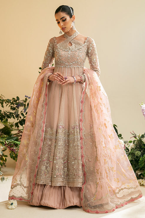 Introducing the Dahlia Pishwas, a stunning ensemble in salmon pink. This exquisite outfit features a...