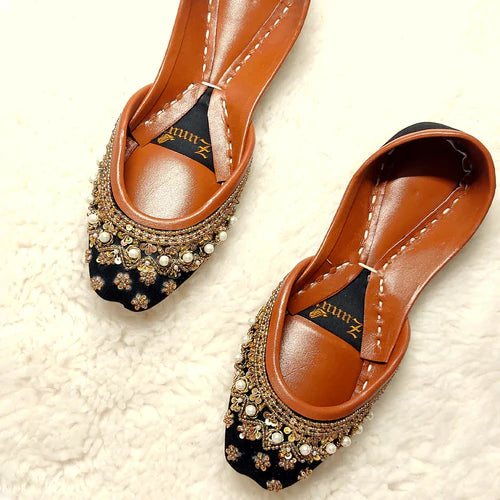 Gender: Women Category: Footwear Outfit Type: Khussa Color Type: Black Sole Material: Leather Top Material: Silk Additional Description: Zun-92 is a quintessential...