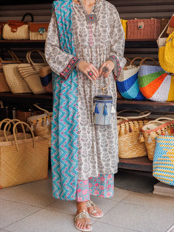 Cotton Dobby Shirt With Front Embroidery: 3 MetersCotton Dobby Screen Printed Dupatta: 1 PcLawn Dyed...