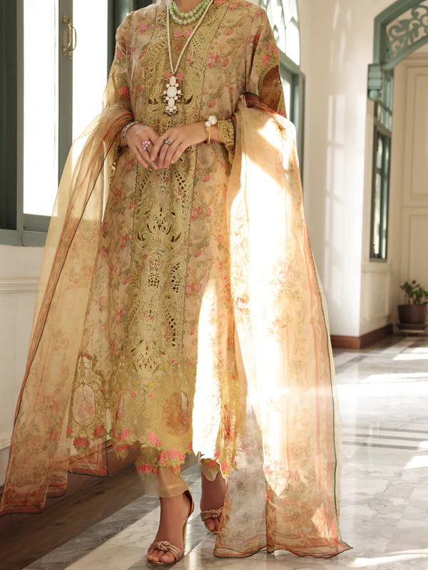 Poly Lawn Printed Shirt: 2.5 MetersPoly Organza Printed Dupatta: 1 PcMaple Silk Dyed Trouser: 2.5...