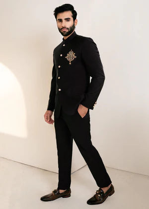 Gender: Men Category: Clothing Outfit Type: Eastern Sub-Category: Prince Coat Color Type: Black Fabric: Jamawar Number of Pieces: 3 Piece - Top...