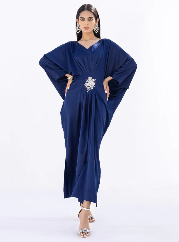 Top Design StylingKaftanLengthFloor LengthNeckKeyhole NecklineSleeve StylingStraight Sleeves With Cutwork Embroidered BorderSleeve LengthThree QuarterHemlineA-LineProduct Design InspirationFrench...