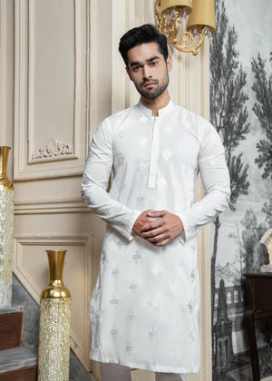 Shahjahan Off White Soft Cotton Embroidered Kurta Trouser