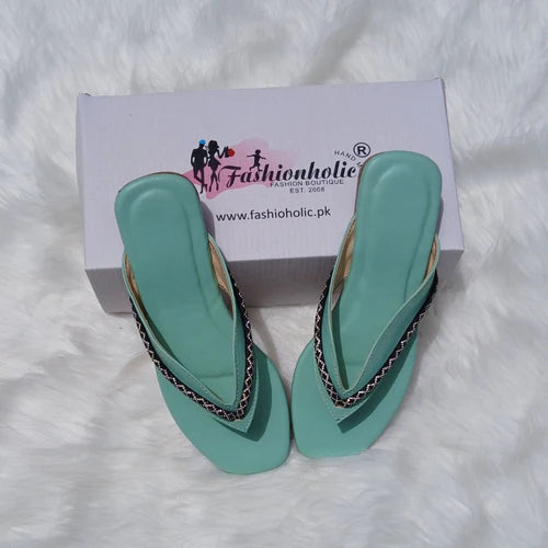 Gender: Women Category: Footwear Outfit Type: Flats Color Type: Turquoise Sole Material: PU Top Material: Rexine Additional Description: Plush designer...