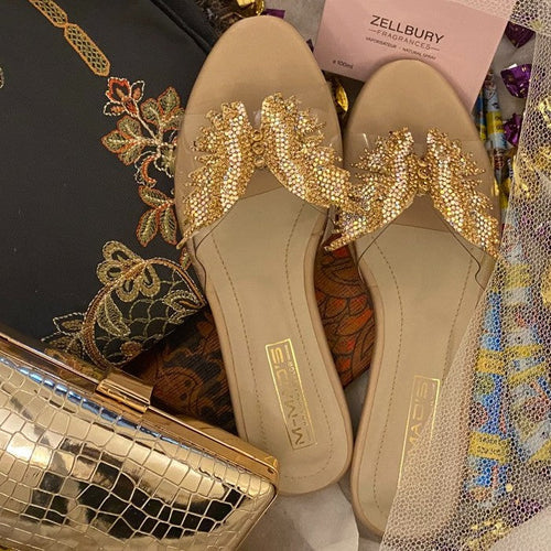 Gender: Women Category: Footwear Outfit Type: Slides Color Type: Gold Sole Material: Leather Top Material: Leather Additional Description: Dazzling glitter...