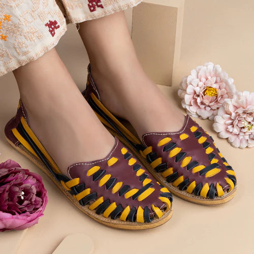 Gender: Women Category: Footwear Outfit Type: Khussa Color Type: Maroon Sole Material: Leather Top Material: Silk Additional Description: Zun-223-MAROON is a quintessential...