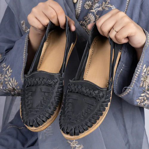 Gender: Women Category: Footwear Outfit Type: Khussa Color Type: Black Sole Material: Leather Top Material: Velvet Additional Description: Zun-54 is a quintessential...