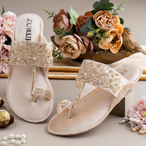 Gender: Women Category: Footwear Outfit Type: Kolapuri Color Type: Cream Sole Material: Leather Top Material: Velvet Additional Description: This Kolhapuri...