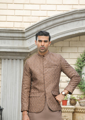 Abdullah Amin By Muraqsh Brown Sequin Embroidered Prince Coat - Men
