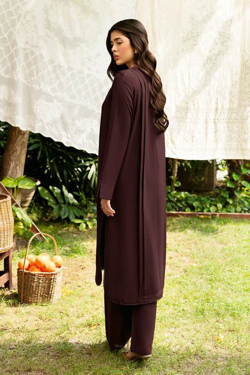 Dark Brown Set Includes an solid shirt pants with the v neckline - Pure premium karandi with a subtle sheen produced in-house!