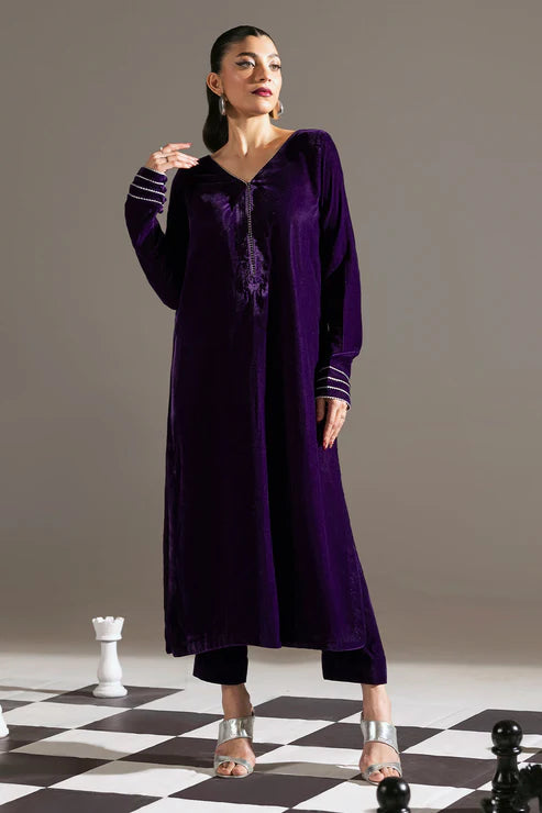 The Purple Set Includes a solid shirt and pants with a v-plunging neckline with lace—pure premium velvet with a subtle sheen produced in-house!