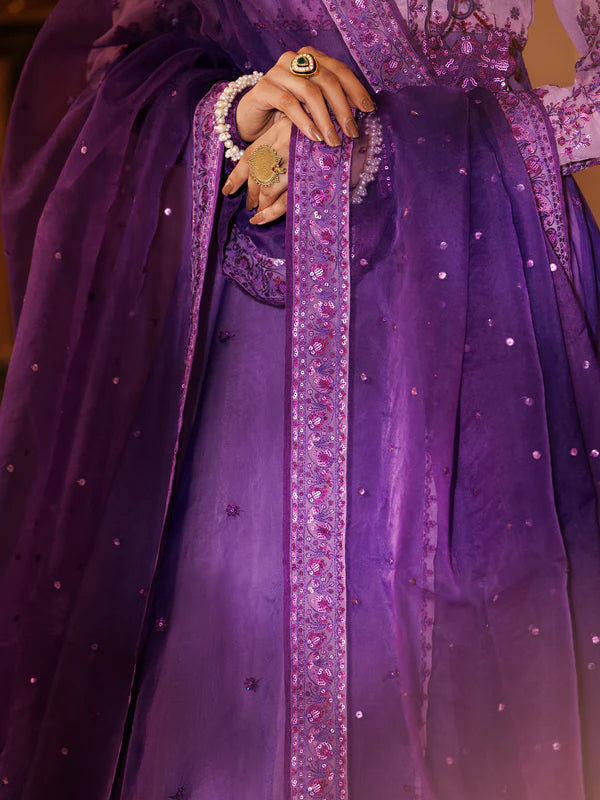 Long Embroidered Organza Angrakha With Embroidered Tassel Dori Paired With Raw Silk Izaar With Embroidered Hem And Organza Chan Dupatta With Embroidered Borders
