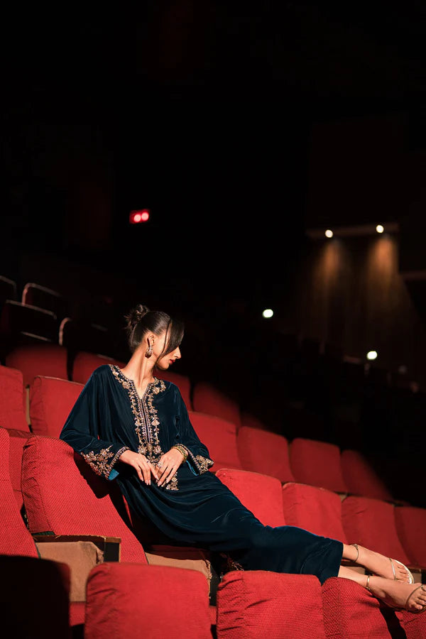 Ammara Khan | Rendezvous Velvet | Statement Teal Velvet Kaftan (D-06)