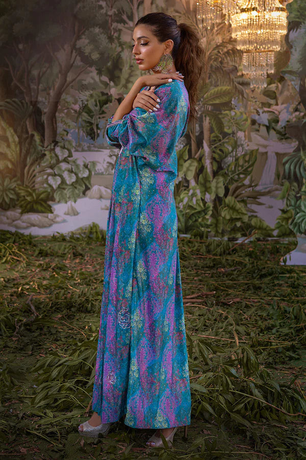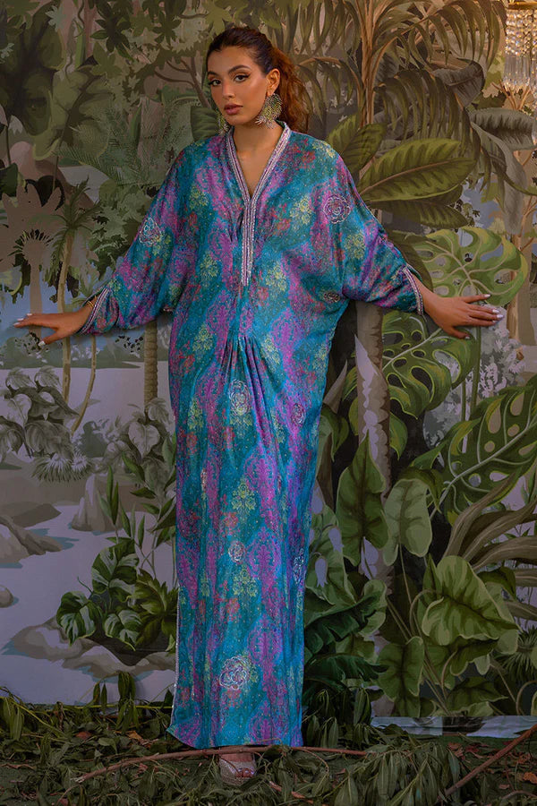 Discover the epitome of contemporary luxury with Floriana. Each intricate stitch and embellishment tells a story of artistry, as cut beads and tikki stones dance upon the sumptuous velvet canvas. This kaftan is your passport to a world where elegance meets avant-garde fashion.