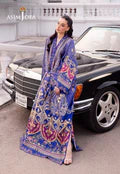 Step into chic sophistication with this royal blue digitally printed kaftan, adorned with intricate traditional print that echoes the charm of cultural heritage. The neckline, beautifully embroidered with fine detailing, serves as a focal point of elegance, while the embroidered sleeves and borders bring an air of opulent artistry. This kaftan stands as a complete ensemble, offering a refined yet bold choice for festive celebrations or formal evenings.