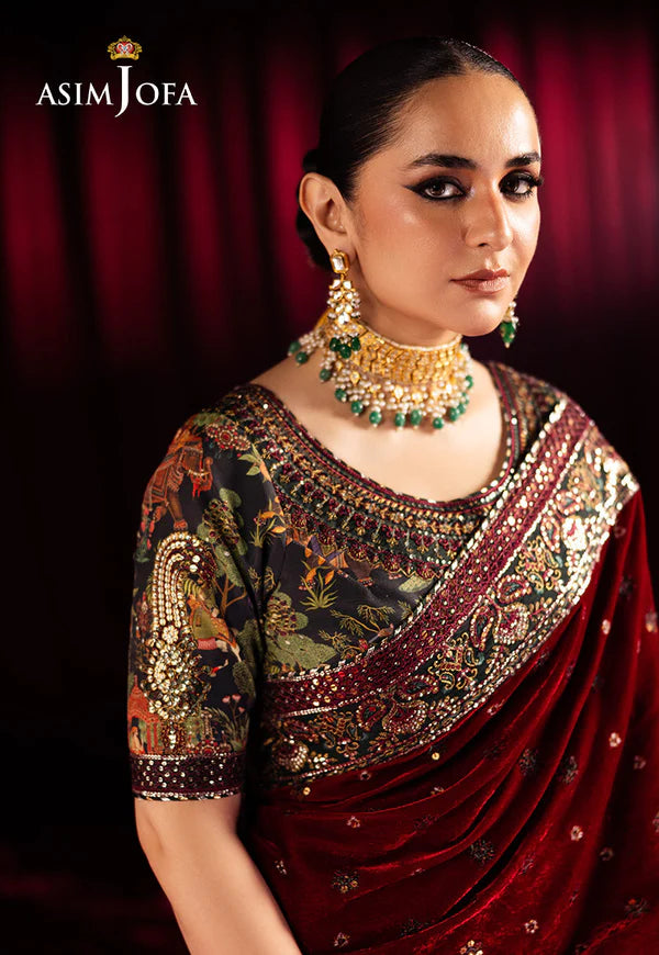 A vision of timeless grandeur, this green and red saree in a partly style effortlessly merges tradition with elegance. The velvet pallu is adorned with intricate embroidery, a masterpiece that exudes regal charm. The blouse, featuring a striking print enhanced with embroidered patches, elevates the ensemble with its artistic finesse. Bottle green and maroon threadwork intertwine gracefully with antique gold zari, while shimmering 5mm antique gold and 3mm light gold cupped sequins add a radiant touch. This saree is a celebration of heritage and sophistication, perfect for moments that deserve to be unforgettable.
