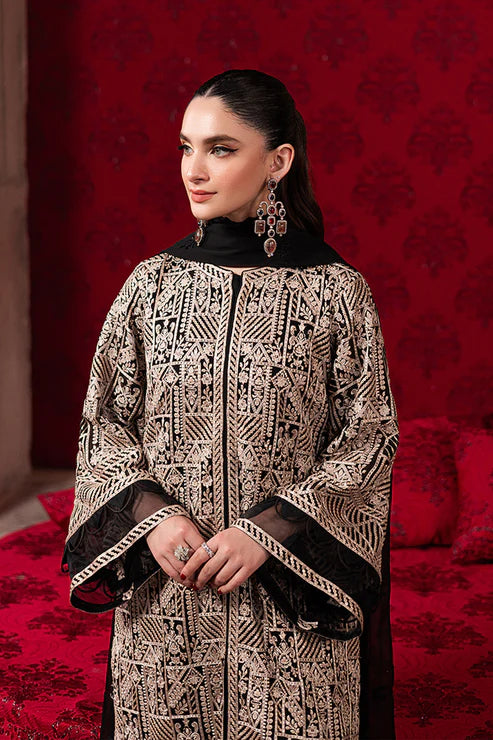 Introducing Urban Muse – a sleek black ensemble that effortlessly combines modern sophistication with timeless elegance. Featuring a sequins embroidered chiffon dupatta, this luxe piece is perfect for making a statement at any chic occasion..