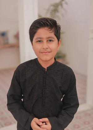Additional Description: Black color Blended cotton fabric Chicken Embroidery For boys 2-3 to 12-13 years Normal Legnth for Kurta & Trouser
