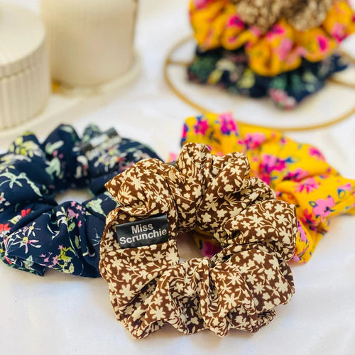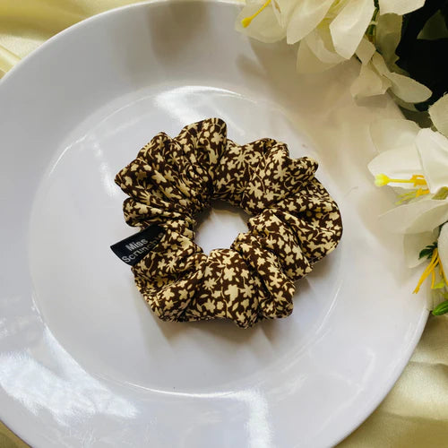 Brown Floral - Printed Scrunchie - 1 piece - Miss Scrunchie