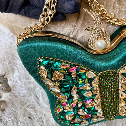 Butterfly Luxe Crystal Clutch – Emerald Glam Edition - Buland'S