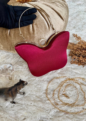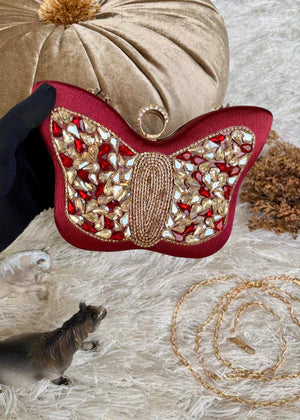 Butterfly Luxe Crystal Clutch – Maroon Royal Edition - Buland'S