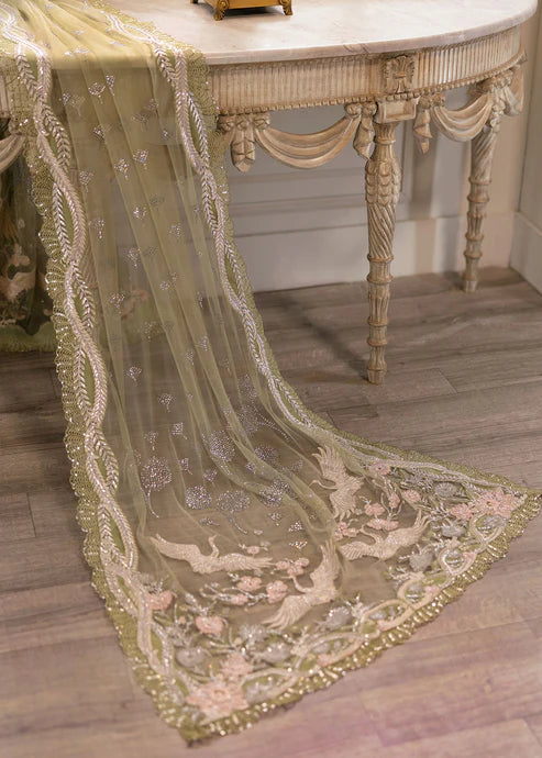 1 Hand Appliqued, Crystal Encrusted Tulle Dupatta With 2 Sequined And Embroidered Dupatta Pallus