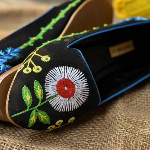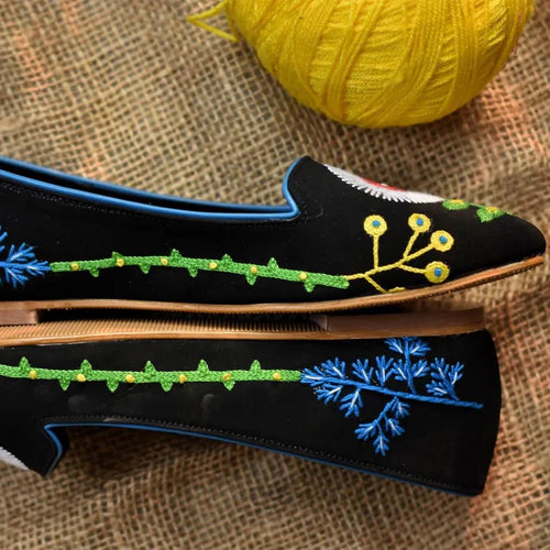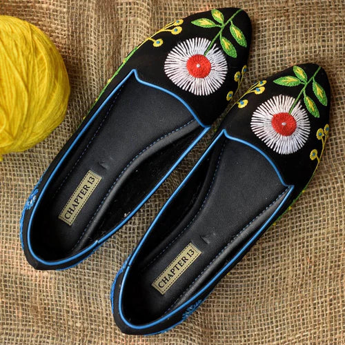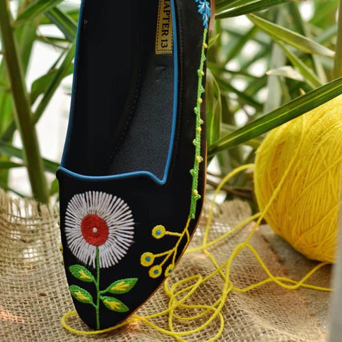 Experience sophistication with casual Pumps! Our flat pumps feature grippy fabric and accent blue piping for a vibrant look. Adorned with colorful thread hand embroidery and white matte thread as the main color, these semi-pointed shoes will surely turn heads. Plus, enjoy ultimate comfort with a foam padded insole with anti skid sole. Step out in style! Upper: Hand Embroidered Grippy Bottom: Anti Skid Sole