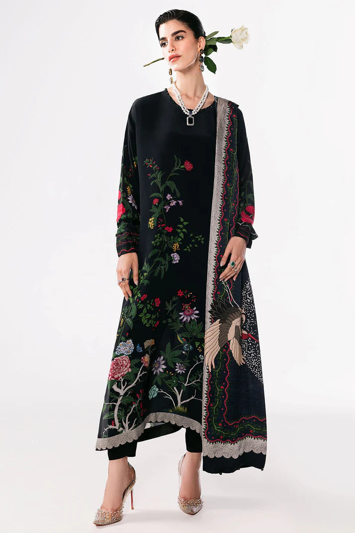 Presenting Amélie by Élan — an exquisite silk ensemble draped on a regal obsidian canvas, evoking the timeless grandeur of Roman antiquity with a modern sensibility. Tailored to perfection, this commanding silhouette captures the essence of vintage elegance fused with contemporary finesse, embodying the poised strength of the Élan woman. Adorned with intricate ornamental motifs in deep cerulean, scarlet, and crimson — reminiscent of ancient frescoes and imperial tapestries — and crowned with a rich ebony hem, Amélie stands as a testament to refined craftsmanship. Complemented by a meticulously bordered dupatta, this creation balances historic opulence with playful versatility. Amélie transcends mere fashion; it is a sartorial homage to a woman who reigns with unwavering grace and timeless authority..