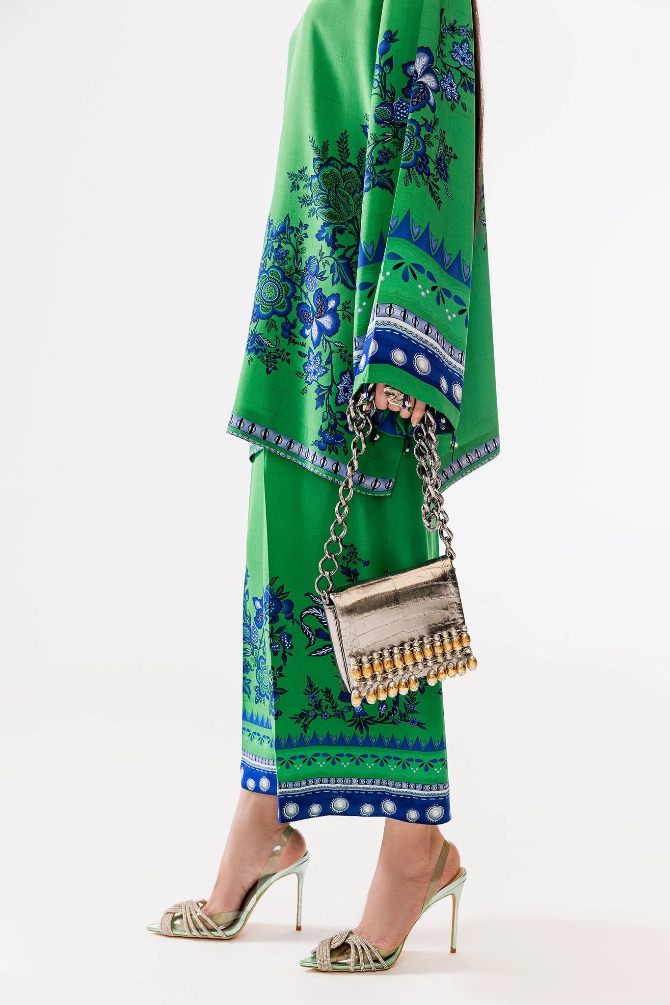 Bathed in a resplendent jade green, Noémie is a commanding co-ord ensemble where botanical opulence meets contemporary boldness. Adorned with meticulously rendered garden motifs—featuring majestic peacocks and delicate florals—this creation conjures an exquisite fusion of nature’s grandeur and haute couture artistry. The silhouette is a masterstroke of sophistication: sharply tailored, impeccably structured, yet softened by the ethereal grace of its intricate detailing. Noémie is conceived for the discerning Élan woman—embodying fearless refinement and effortless allure..
