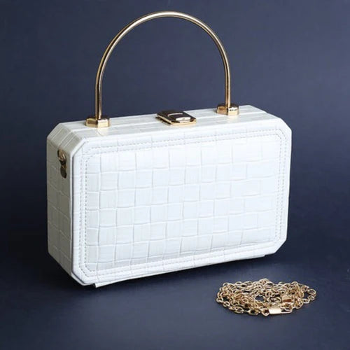 Elegant Croc-Embossed Clutch White - MHW Bags