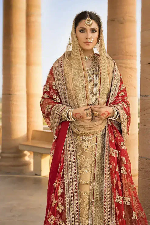 Embroidered added red dupatta (2) 3.25 yard on Net Fabric ( Additional charges)