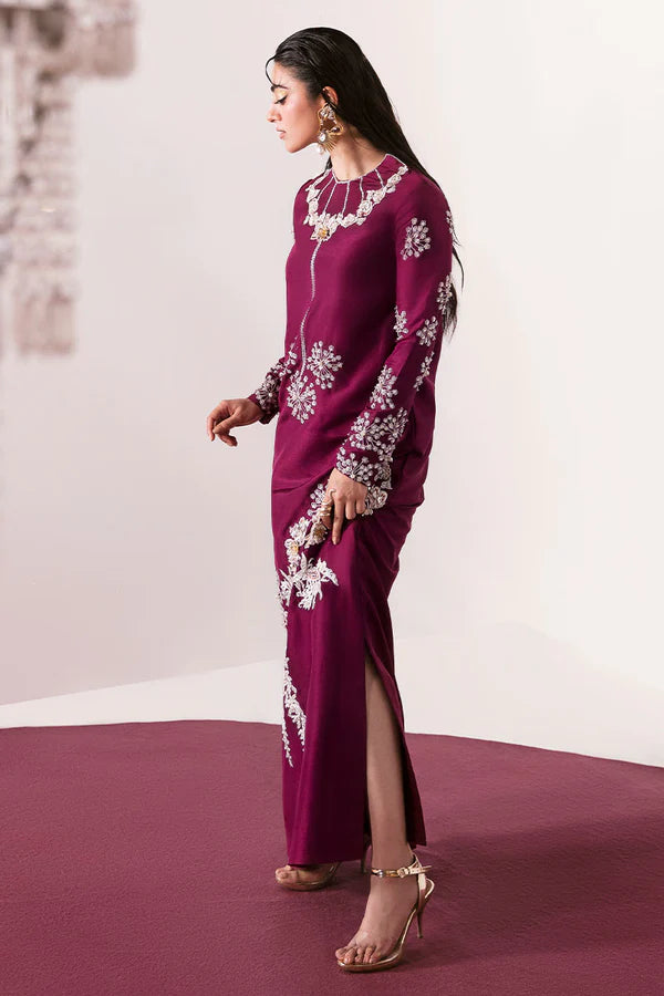 Step out in style with the PUNK long kaftan shirt, Designed from premium quality Pure Rawsilk fabric in a captivating Plum Maroon hue, this shirt features a unique motif that adds a touch of intrigue and sophistication to your look. The embellished round neckline is designed with a modern and edgy twist. Whether you're heading to a casual event or a special occasion, the PUNK long kaftan shirt is the perfect choice for making a bold and unforgettable impression.