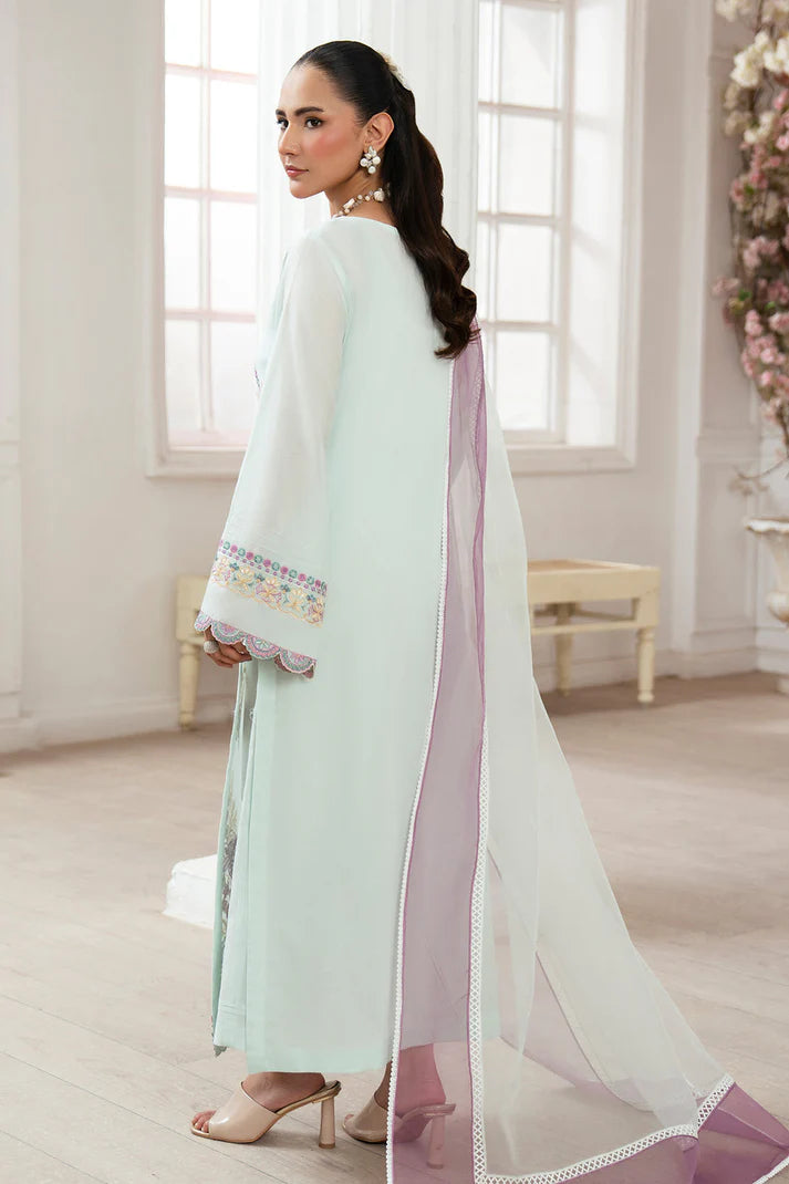 Embroidered Lawn shirt Plain organza dupatta with lace border Plain cotton trouser .