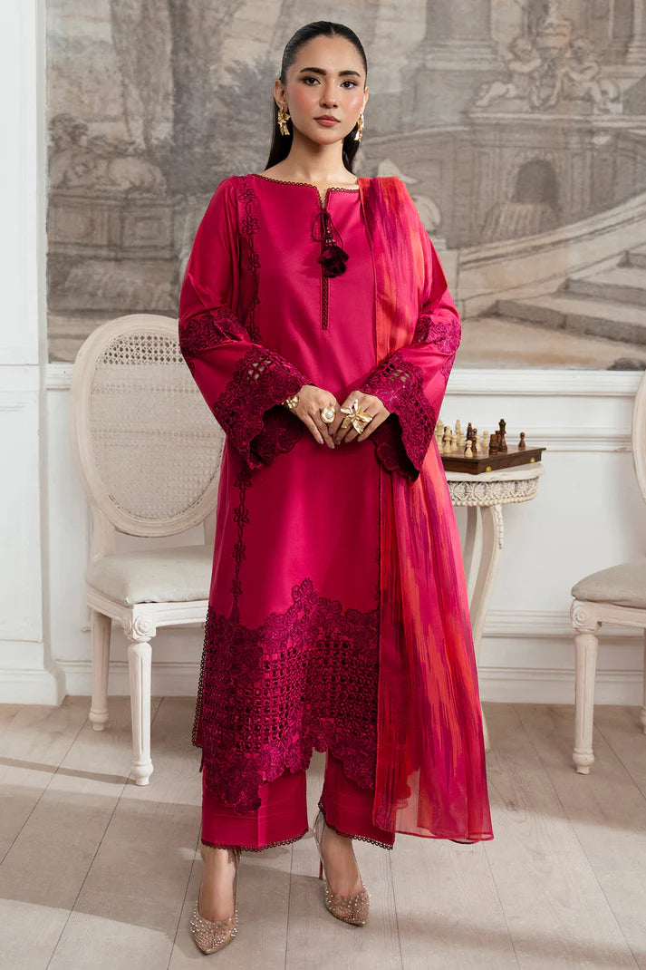 Embroidered Lawn shirt Printed silk dupatta Plain cotton trouser.