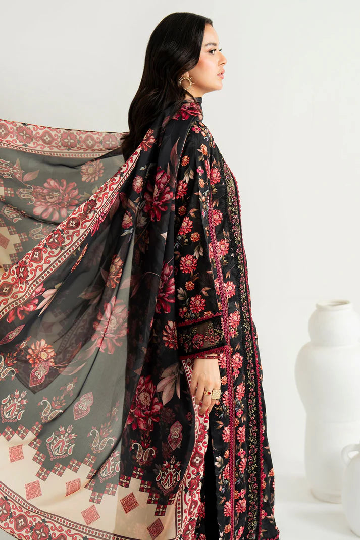 Embroidered & printed lawn shirt