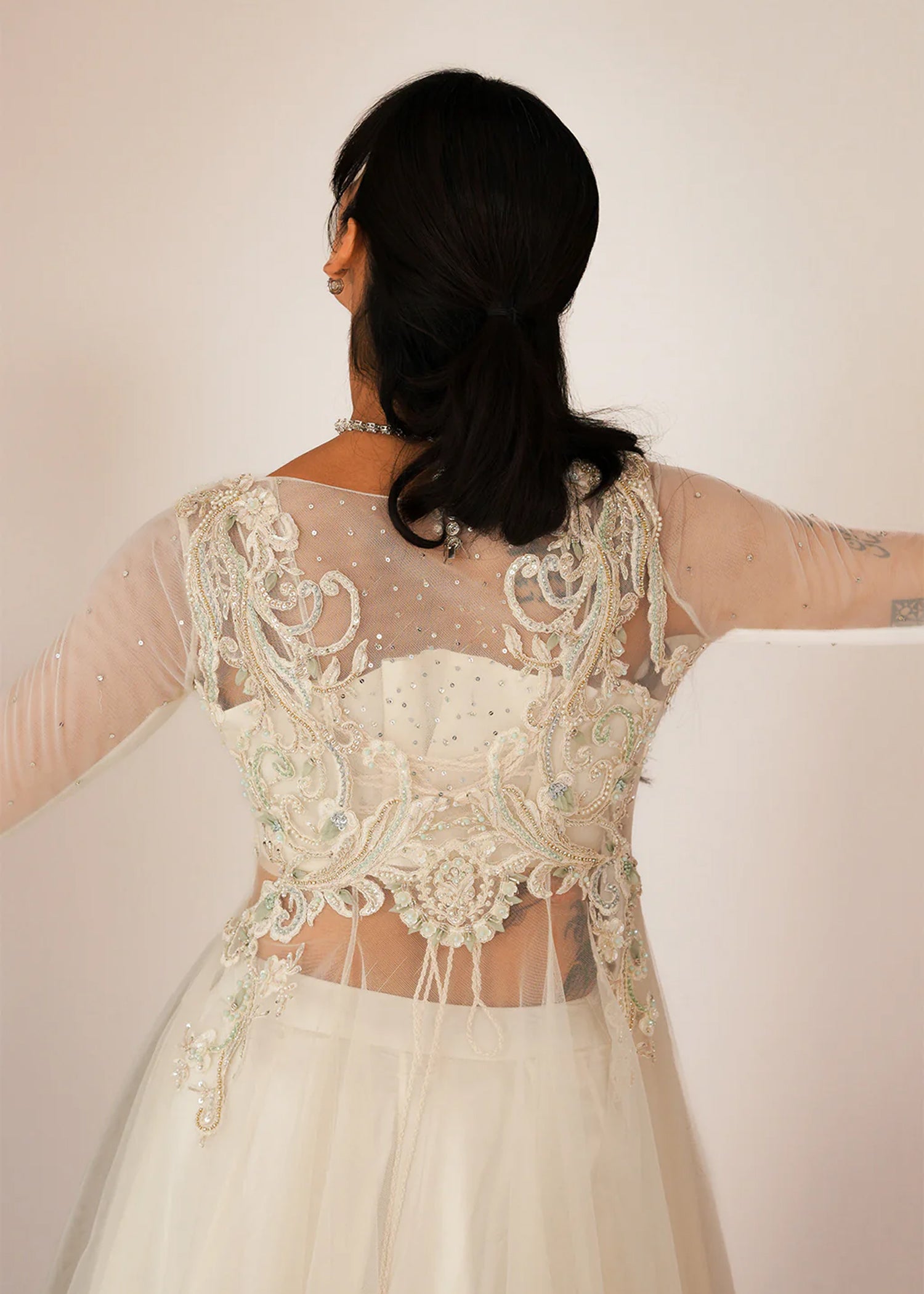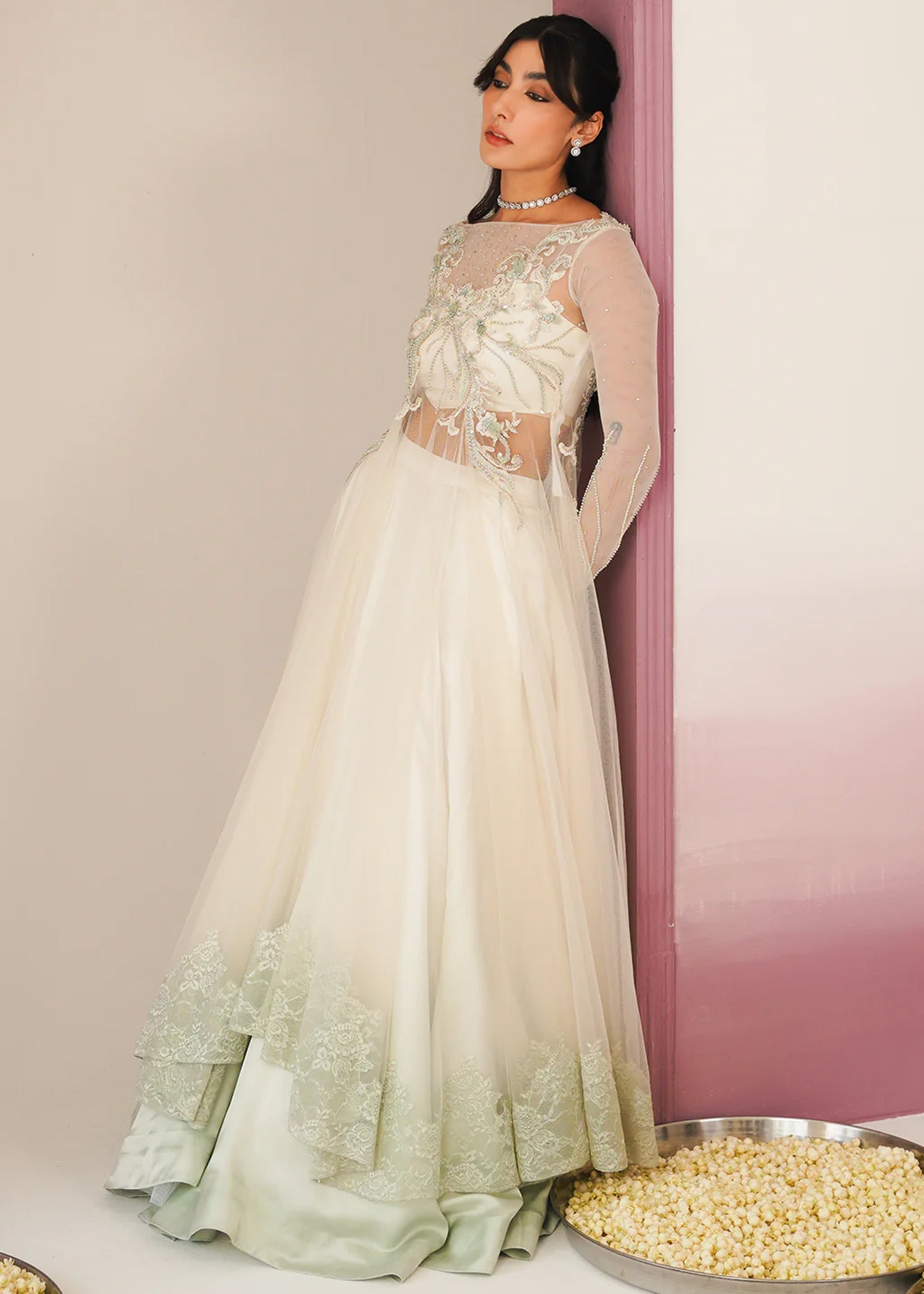 "Product# Off white net peshwaz