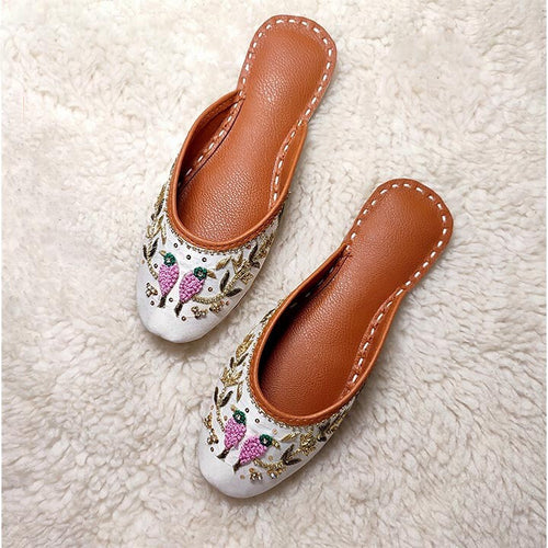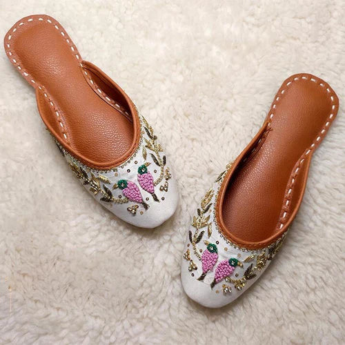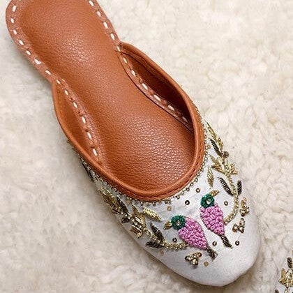 ju-96-white is a quintessential exemplary of pleasant, luxurious and traditional artistry jutti made with beautiful hand made work on Jute Fabric . These are the adorable heritages of Pakistan that are hand-sewed by determined cordwainers of rural areas to exhibit the utmost beauty of prepossessing feet.