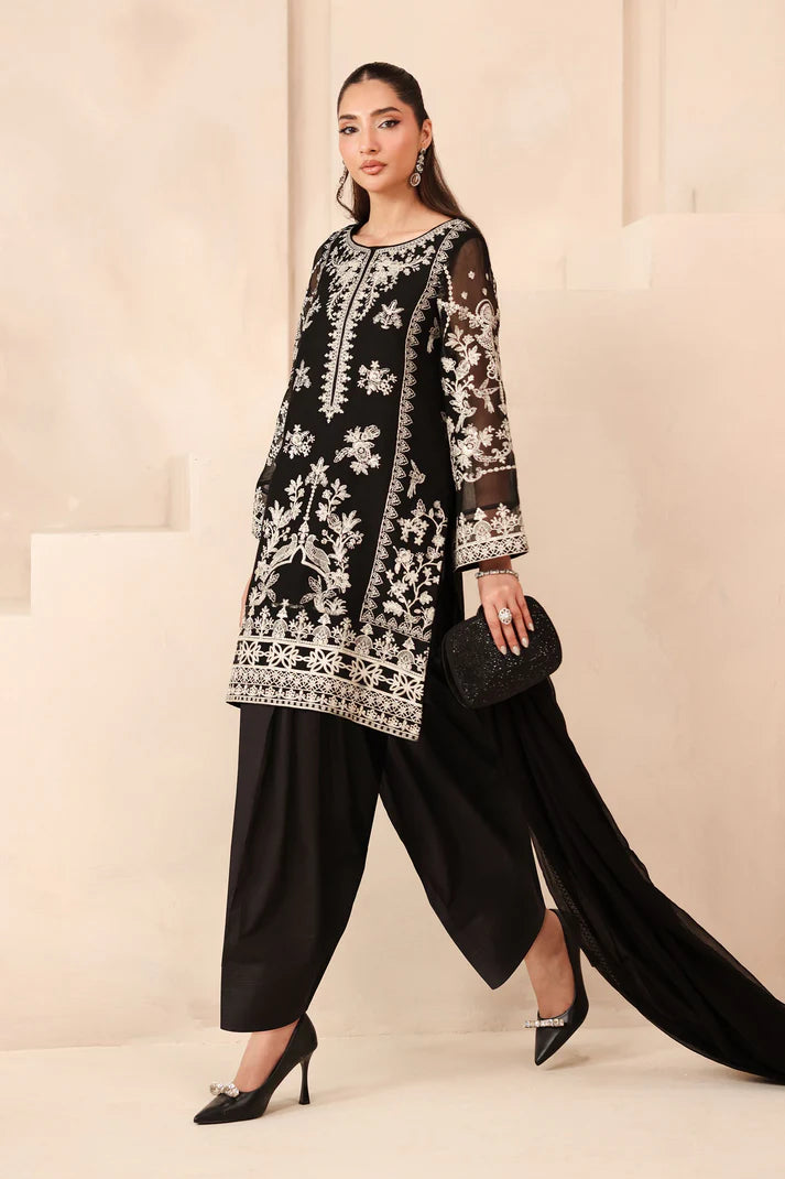 Maria B | Pre Fall Dresses | 3 Piece Embroidered Cotton Net Suit Black