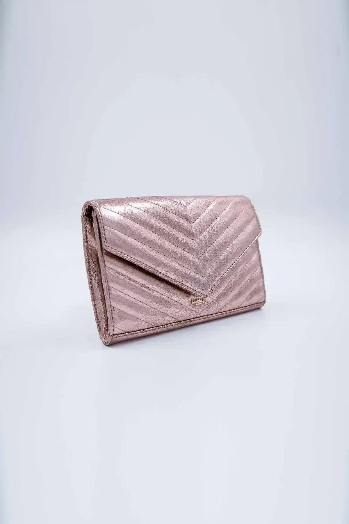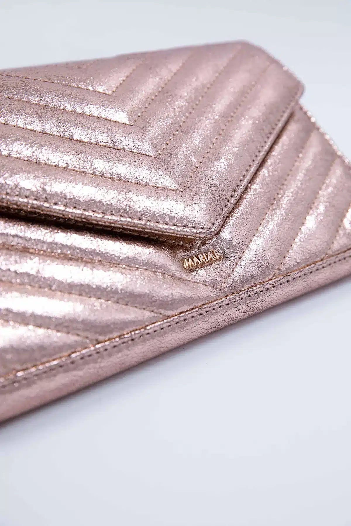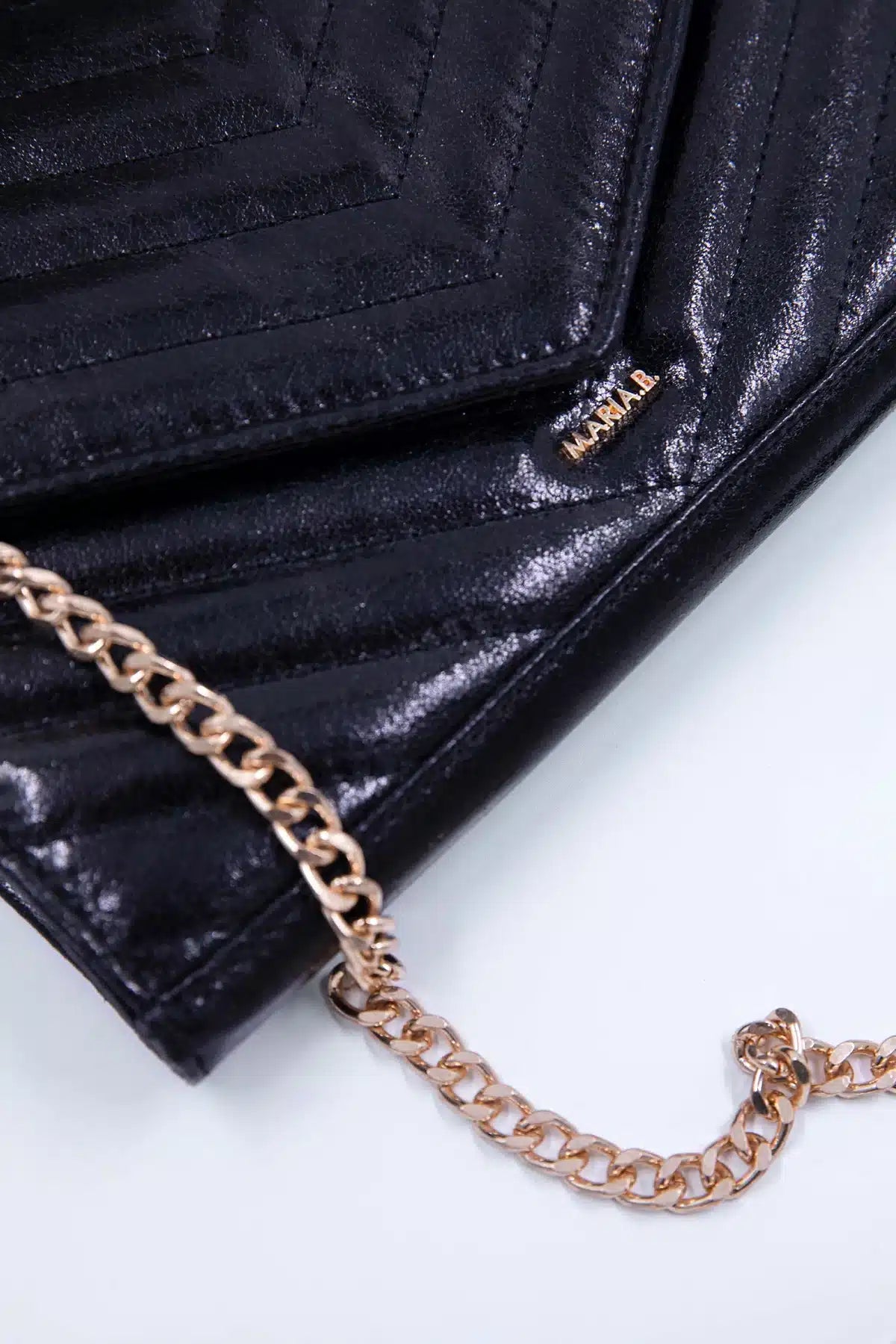 Shining with a glistening matte sheen, this shimmery clutch features a quilted design with a fold-over flap, adding a bit of glam to its look. It fastens with a magnetic-lock clasp, with a metallic chain strap for over-the-shoulder carrying. Wear it with your formal and evening look for an understated style statement.
