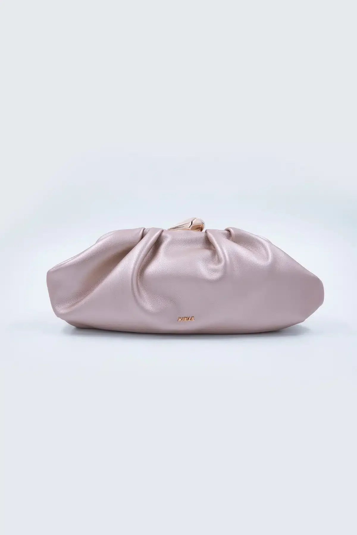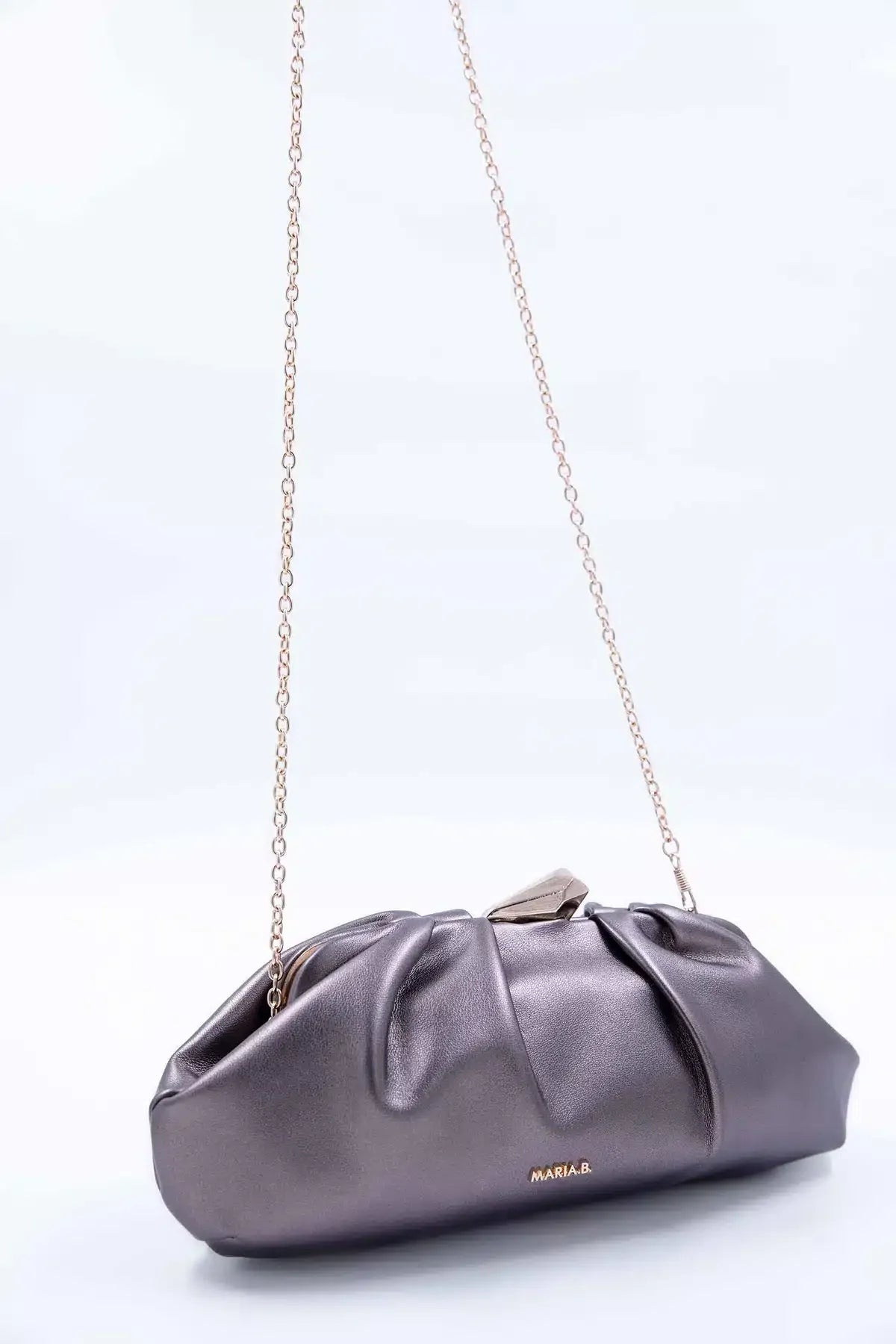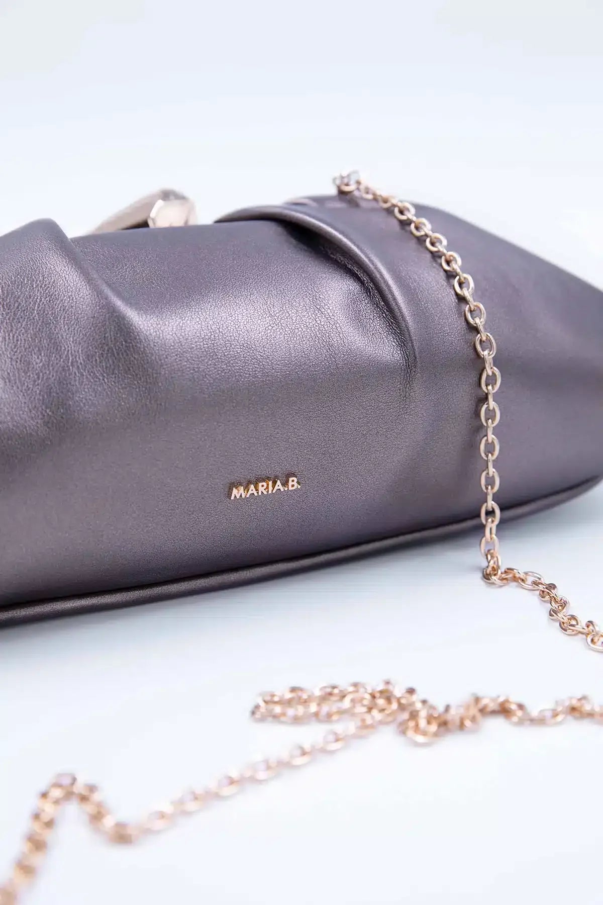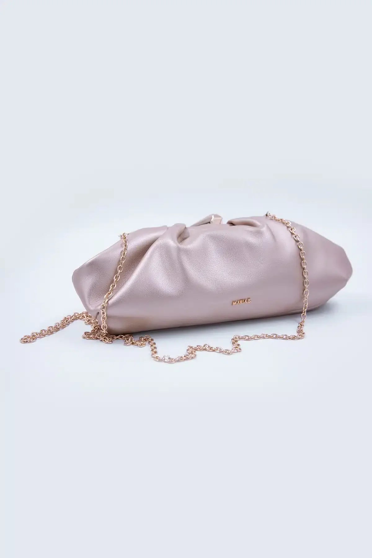 This clutch proves what an elegant combination of a metallic finish and high-shine hardware can be. Featuring a delicate yet edgy chain strap, this bag’s gathered, cloud-like silhouette is roomy enough to fit all your essentials. Pair it with your formal or evening wear for the ultimate statement look.
