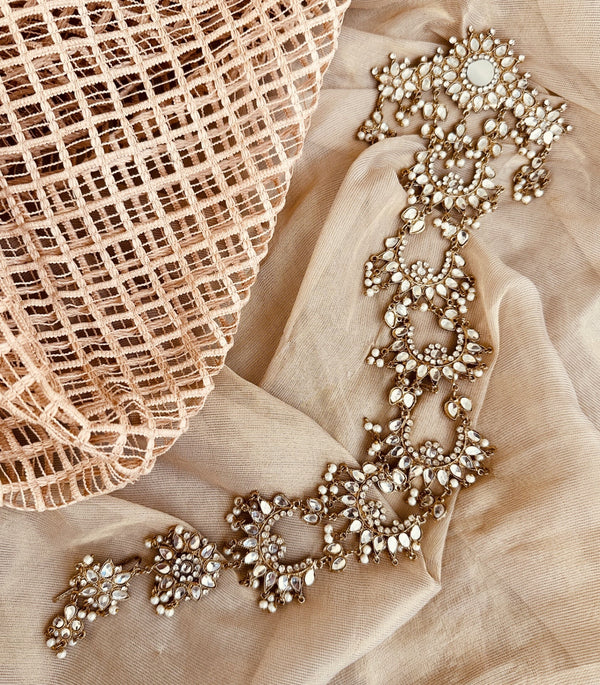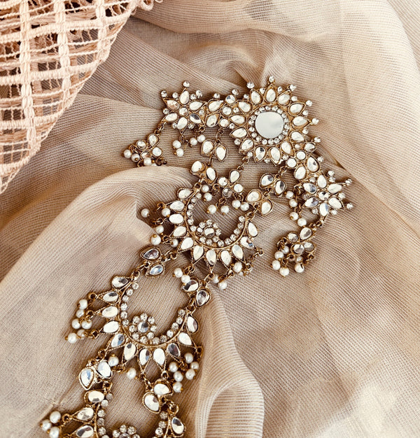 Step into timeless charm with our Morni Paranda in a rich antique finish. Adorned with intricate details and peacock-inspired accents, this paranda adds an old-world regal touch to your braid. Perfect for mehndi, mayun, or traditional bridal looks.