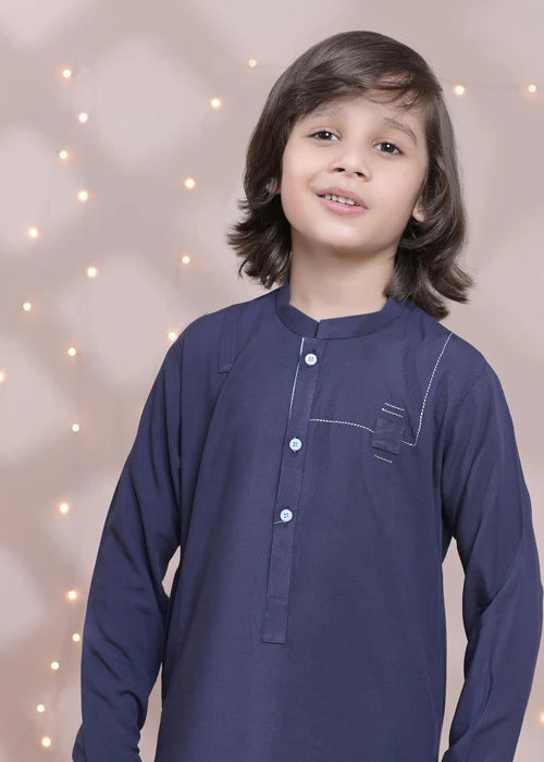 Additional Description: Navy blue color 100% Cotton fabric kurta with elegant embroidery on collar & front For boys 2 - 13 years