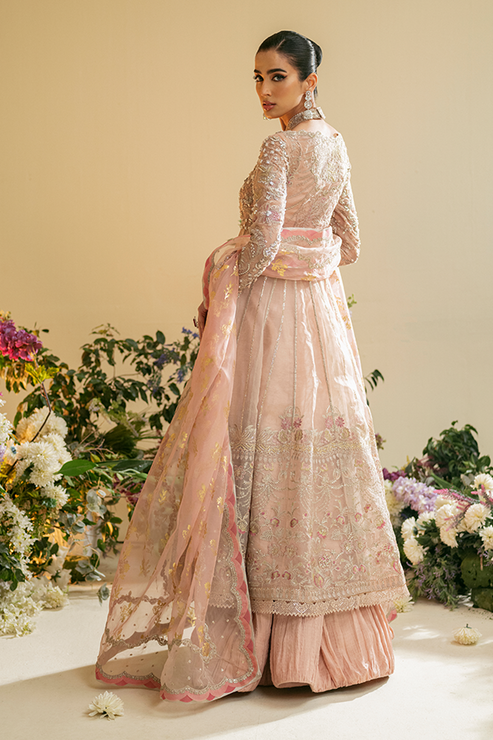 Zunia is a lavishly curated lavender ensemble that exudes refined elegance. The organza shirt with beautiful harmonized needlework, paired flawlessly with crushed trousers in raw silk, showcases meticulous craftsmanship adorned with pearls, dabka, kiran, tilla, and exquisite threadwork. Elevate your formal aesthetic with the ethereal allure of Zunia, where breathtaking embroidery meets the richness of lavender tones, guaranteeing you a standout presence on your most treasured occasions.