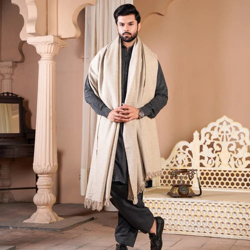 This classic men's wool shawl from Deenaar is a must-have for the winter season. Crafted from luxurious Bannu wool in an elegant off-white hue, this shawl is perfect for adding a touch of warmth and style to any outfit. Stay cozy and sophisticated with this timeless accessory.