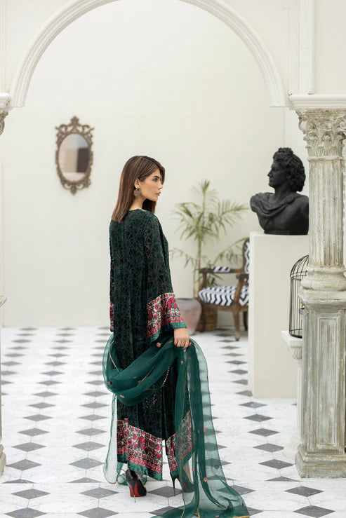 Step into timeless elegance with our moss green Plush chiffon Kaftan kurta intricately hand-worked on the neckline and placket with resham, dabka and zardozi. Luxuriously crafted, the outfit exudes sophistication. Perfect for any occasion, this ensemble blends tradition with contemporary flair. Matching korean silk staright pants (Included). Pair it with a matching organza Dupatta hand-worked with small motifs and gota edging (Sold Separately)