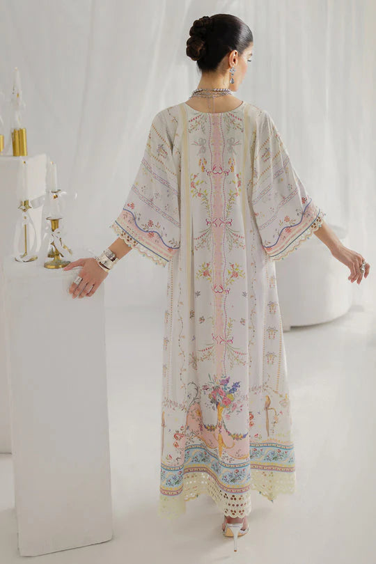 Kaftan Front & Sleeves : Digital Printed Silk (Hand Made) Back : Digital Printed Silk Embroidered Border (Front & Back) Embroidered Border (Sleeves).
