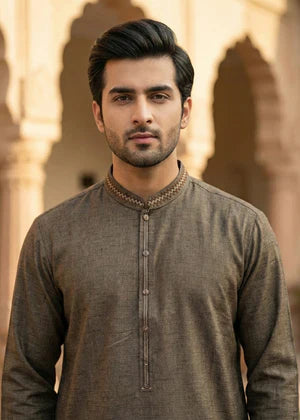 This exquisite Men's Eastern Kurta Set exudes elegance and style. Crafted from textured wash & wear fabric in a rich brown hue, the set includes a Long Kurta top with intricate embroidery work. Paired with straight trousers, this festive/party wear ensemble is perfect for all seasons. Elevate your wardrobe with this tasteful creation from Real Image Clothing.
