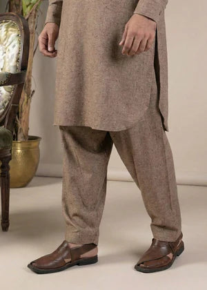 This exquisite Men's Blended Karandi 2-Piece Shalwar Kameez set by Real Image Clothing is perfect for daily wear during the winter season. The long kurta top in a rich brown color exudes a classic charm, while the loose-fit bottom ensures comfort all day long. Elevate your Eastern wardrobe with this timeless ensemble.