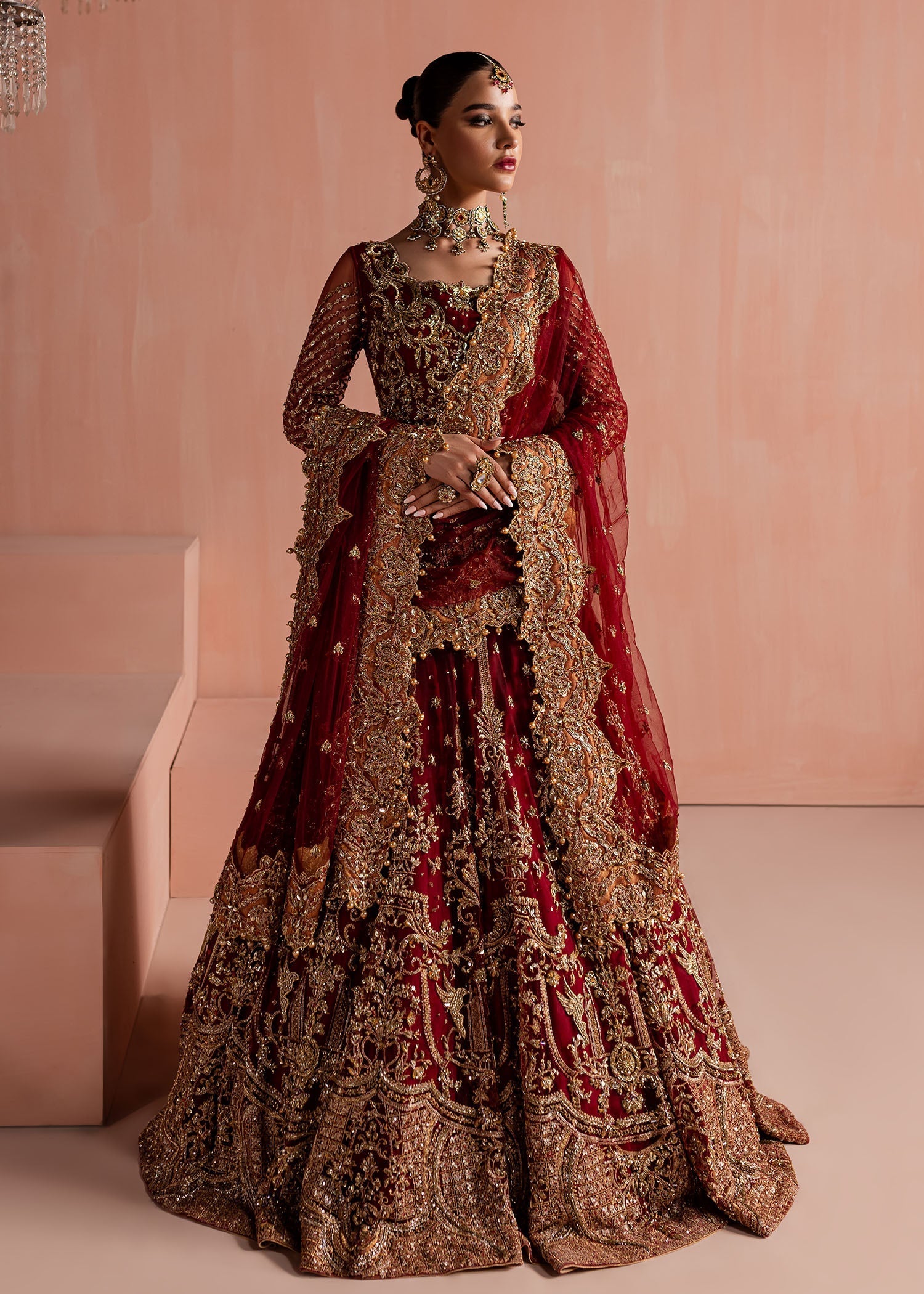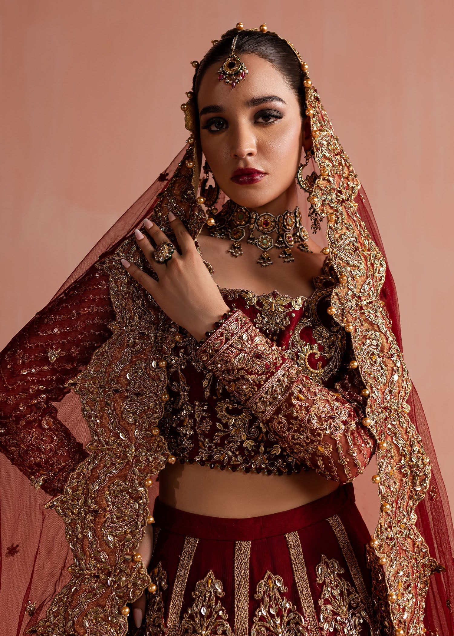 The stunned in classic gold and red is ‘Raag’, the enchantress. Red net has never looked this stunning with sparkling bead work and shimmers of gold sitara, naqshi and crystal. This mesmerising beauty has the most luxe feel this season for the statement bridal couture look.